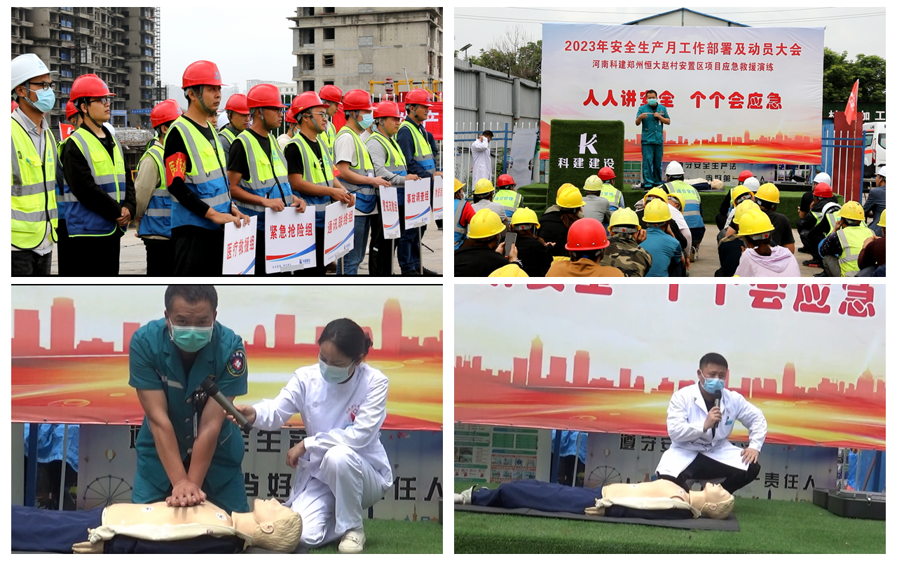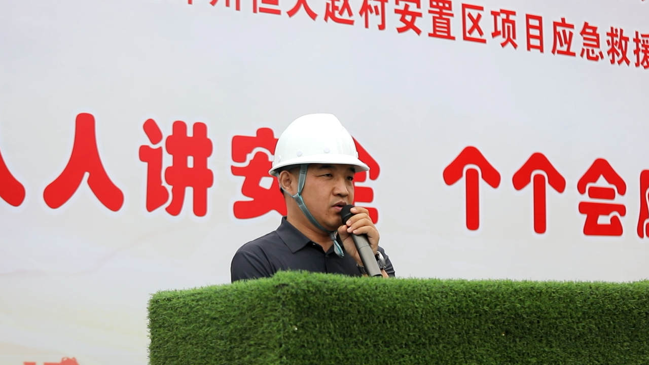 2023年5月30日上午10:00,以“人人讲安全,个个会应急”为主题的2023年“安全生产月”动员大会暨高处作业专项应急演练活动在恒大赵村安置区项目召开,建设单位完美中国官网部经理郑志成、万安完美中国官网咨询有限公司监理代表、公司董事兼副总经理马西锋、公司副总经理齐含钊、公司副总经理孙全明、恒大赵村安置区项目经理史伟、公司完美中国官网部、技术部及公司所属各项目生产经理、技术负责人、安全主管,恒大赵村安置区施工现场作业人员共计200余人参加,姬涛主持活动。